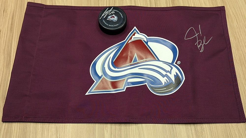 Elevate your sports memorabilia collection with this exclusive auction item featuring not one, but two remarkable pieces from the Colorado Avalanche! Signed Hockey Puck: Dive into the excitement of the rink with this official Colorado Avalanche hockey puck, personally signed by defenseman Sam Girard. A testament to the thrilling moments and unforgettable plays of the Avalanche, this puck is a must-have for any devoted fan. Signed Golf Flag: Tee off with pride with this unique golf flag, autographed by head coach Jared Bednar. Perfect for the Avalanche enthusiast who loves hitting the greens, this flag combines the finesse of golf with the passion of hockey. Whether you're a die-hard fan or a collector of rare sports memorabilia, this set offers a spectacular way to celebrate your love for the Colorado Avalanche. Display it proudly in your home or office and let it serve as a constant reminder of the thrilling victories and cherished memories of your favorite team. Don't miss your chance to own this incredible piece of Avalanche history—place your bid now and score big for your collection!